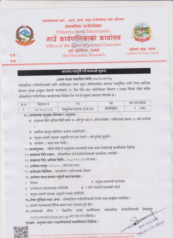 करारमा एम्बुलेन्स चालक आवश्यकता सम्वन्धि सूचना !