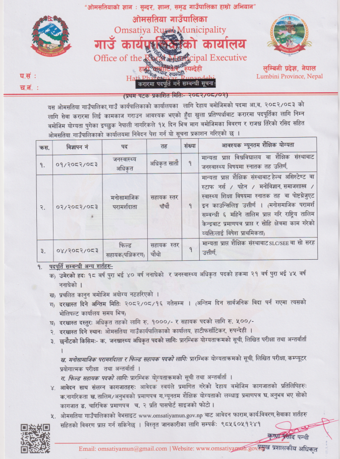 » करारमा पदपूर्ति गर्ने सम्वन्धी सूचना !