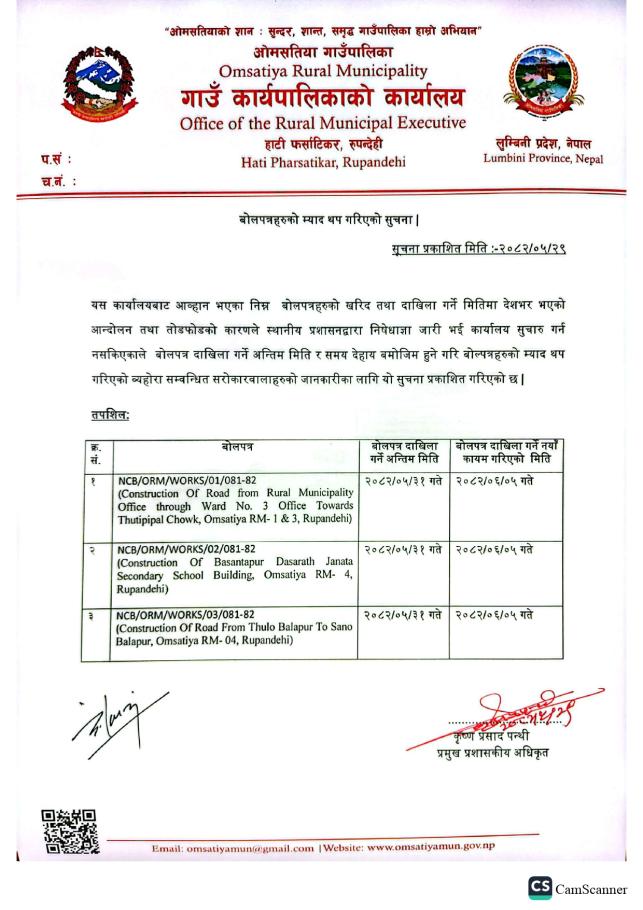 » बोलपत्रहरुको म्याद थप गरिएको सूचना
