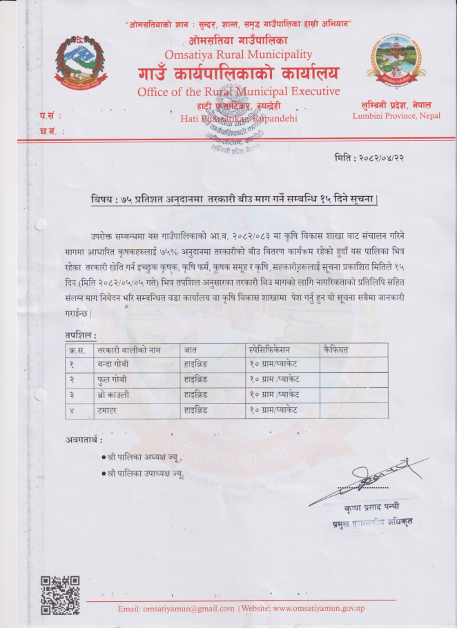 » ७५ प्रतिशत अनुदानमा तरकारी विउ माग गर्ने सम्वन्धि सूचना !