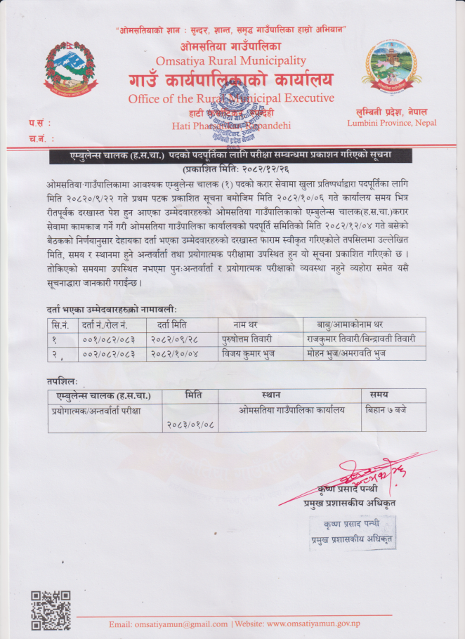 एम्वुलेन्स चालकको करार छनौट सम्वन्धि सूचना !!