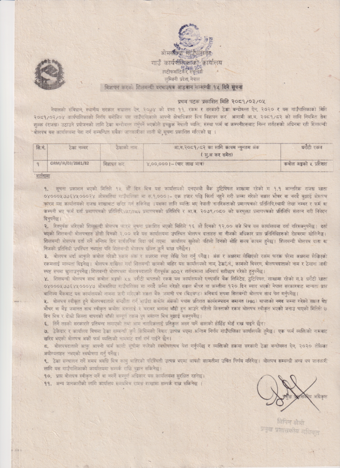 बिज्ञापन करको शिलबन्दी दरभाउ पत्र आव्हान सम्बन्धी १५ दिने सूचना