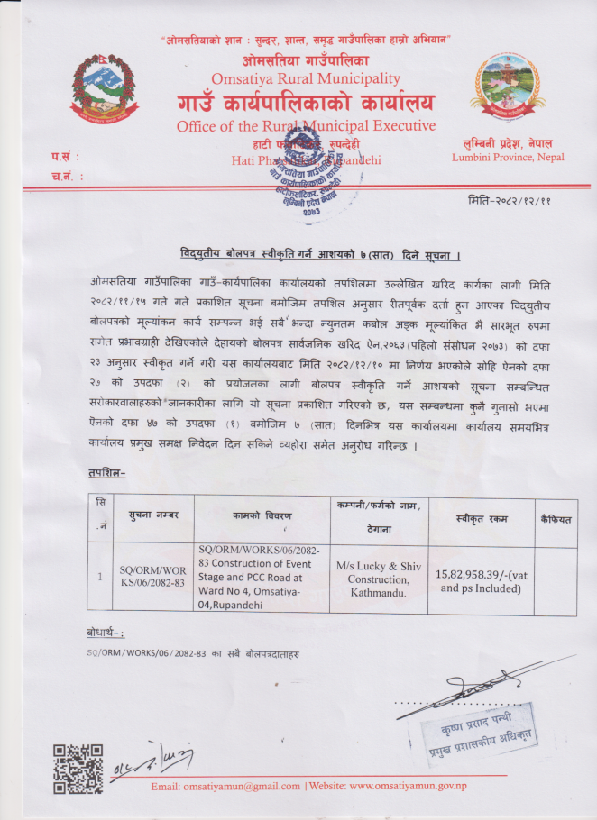 विद्धुतिय बोलपत्र स्वीकृत गर्ने आसयको ७ दिने सूचना !