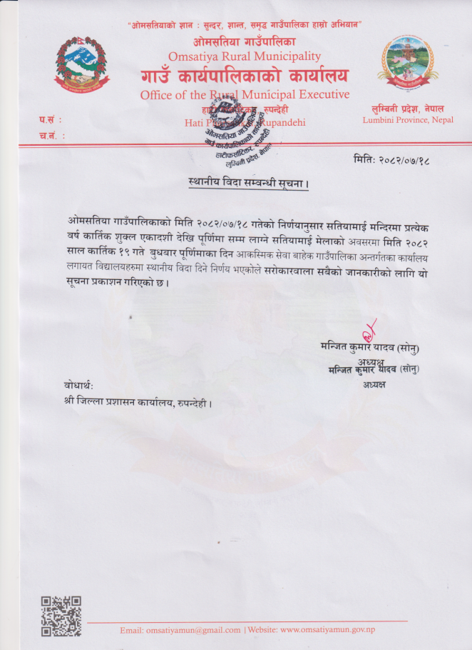 स्थानीय विदा सम्वन्धि सूचना !!